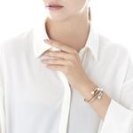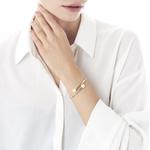 Ovalna narukvica promjera 58 mm od pozlaćenog čelika s okruglim bijelim biserima promjera 9 mm.