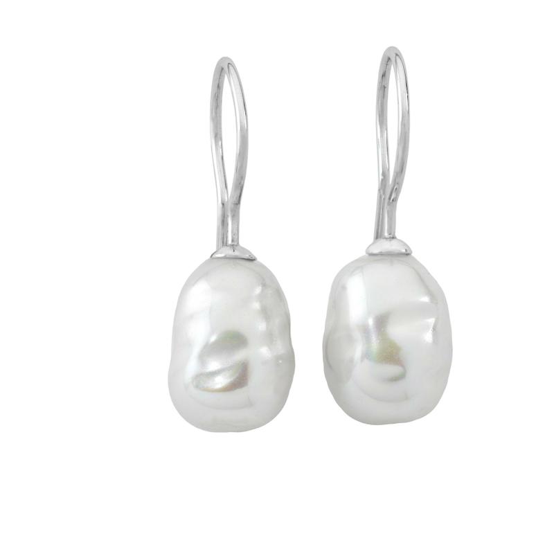 Naušnice na kopču udica od rodiniranog srebra s baroknim bijelim biserima promjera 8 mm.