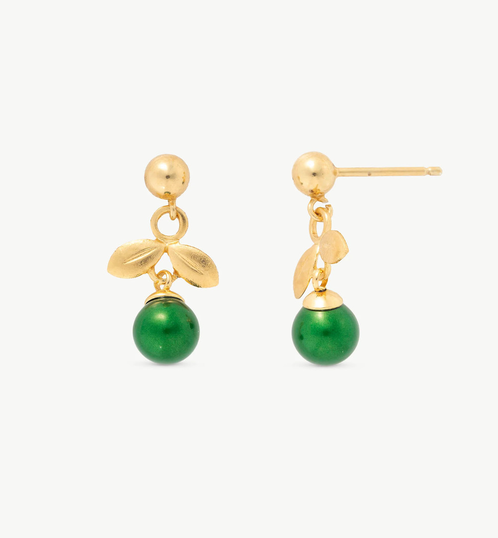 Zlatom obložene srebrne naušnice s 6mm zelenim biserima.