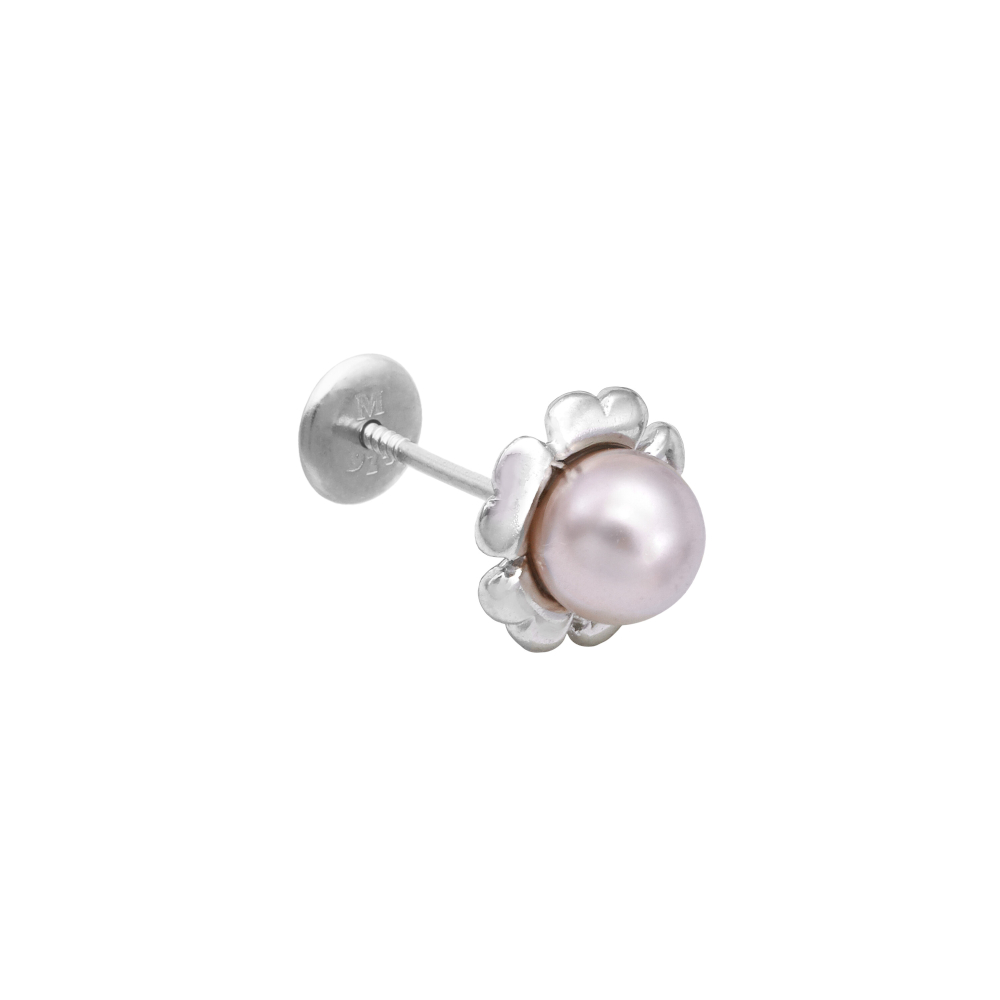 Naušnica (1 kom) od rodiniranog srebra s okruglim roza biserom promjera 4 mm.