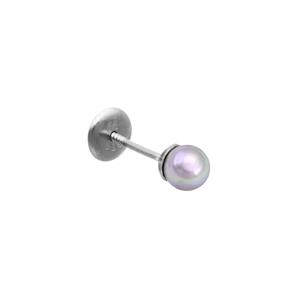 Naušnica (1 kom) od rodiniranog srebra s okruglim sivkastim biserom promjera 4 mm.