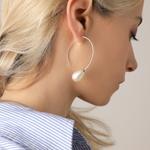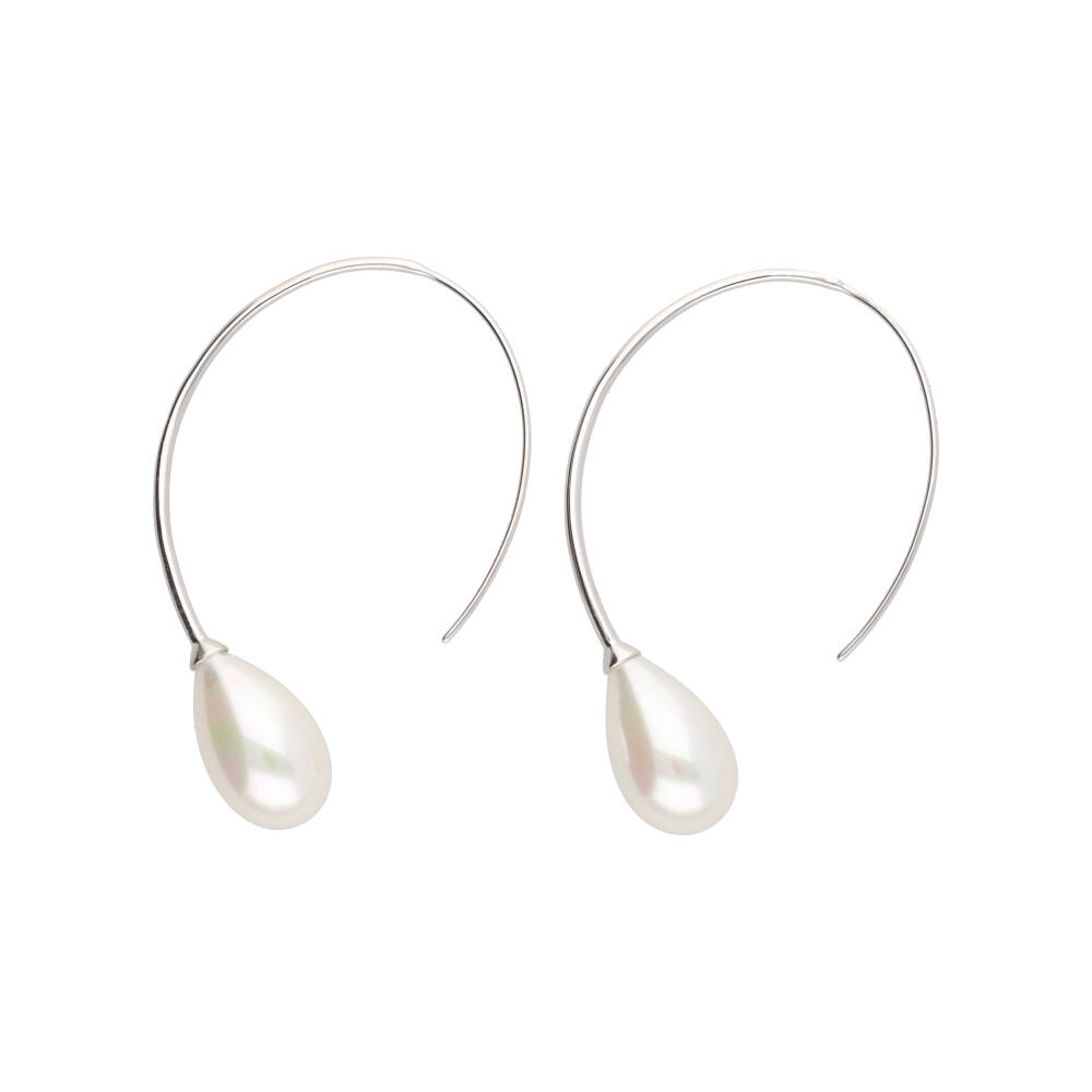 Naušnice na kuku od rodiniranog srebra dužine 6 cm s bijelim biserom dimenzija 12x20 mm.