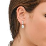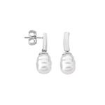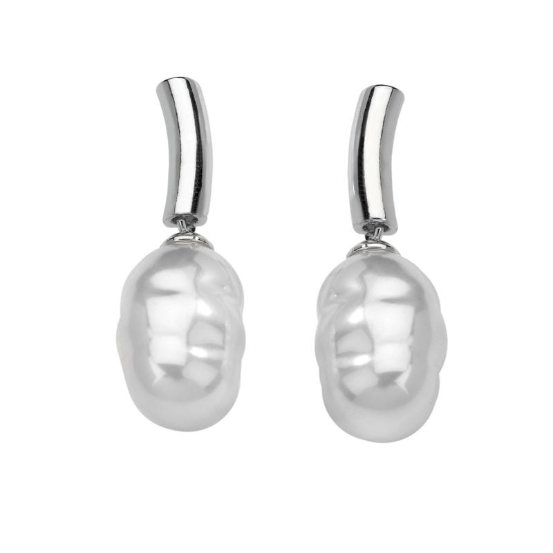 Naušnice viseće, kopča s iglom, srebrne s presvlakom od rodiniranog srebra s bijelim baroknim biserima promjera 8 mm.
