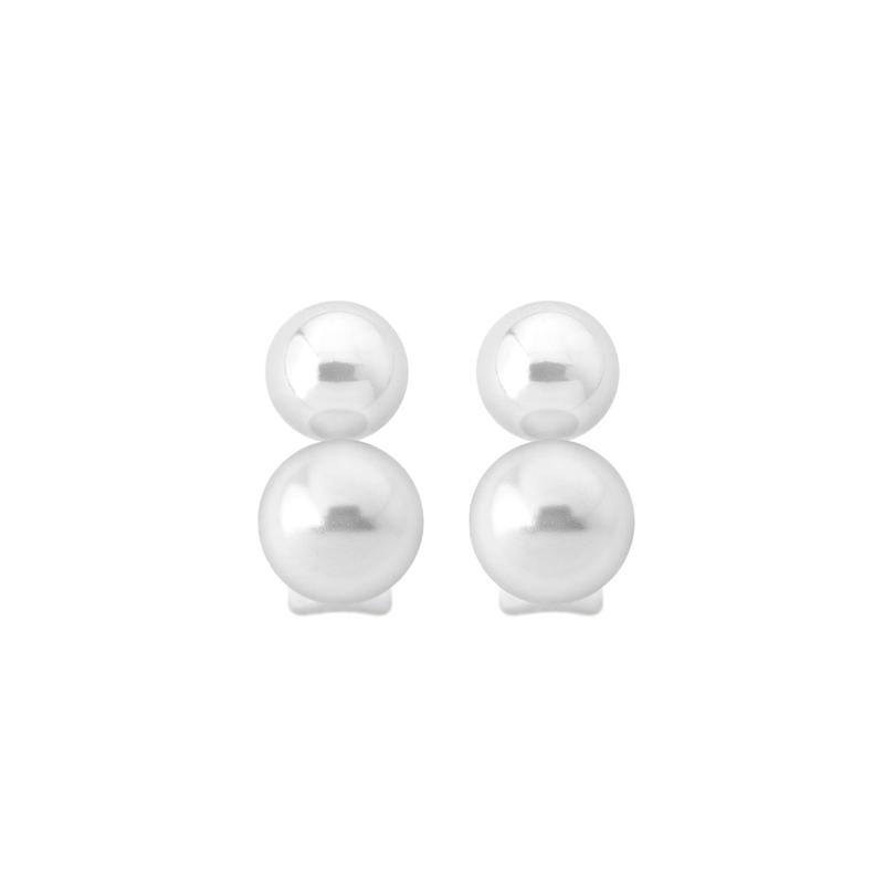 Naušnice na kopču s iglom od rodiniranog srebra s okruglim bijelim biserima promjera 7 i 9 mm.