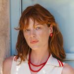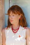 Naušnice na kopču s iglom od pozlaćenog srebra, s okruglim crvenim biserima promjera 6 mm.