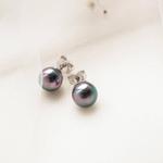 Naušnice na kopču s iglom od rodiniranog srebra s okruglim sivim biserima promjera 6mm.