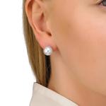 Naušnice s kopčom na iglu od rodiniranog srebra s okruglim bijelim biserima promjera 10 mm.