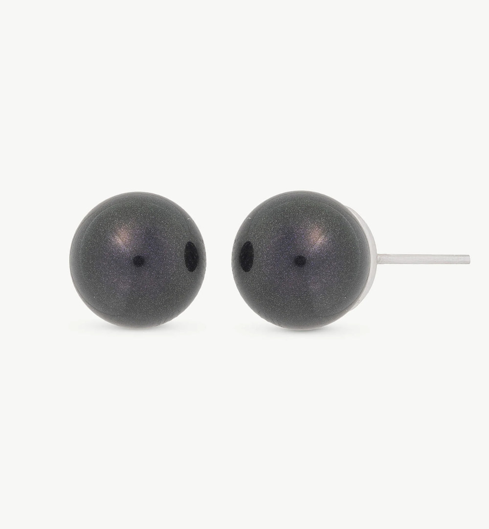 Naušnice od srebra prekrivene rodijem, s okruglim crnim biserima promjera 10mm
