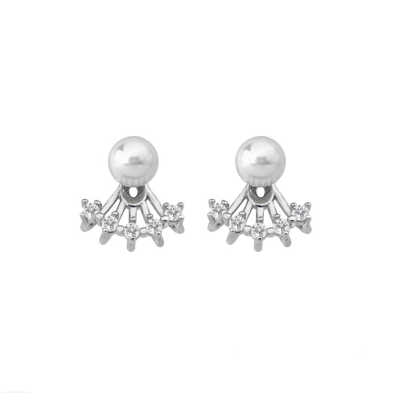 Naušnice na kopču s iglom od rodiniranog srebra s okruglim bijelim biserima promjera 6 mm i cirkonima