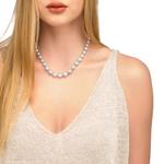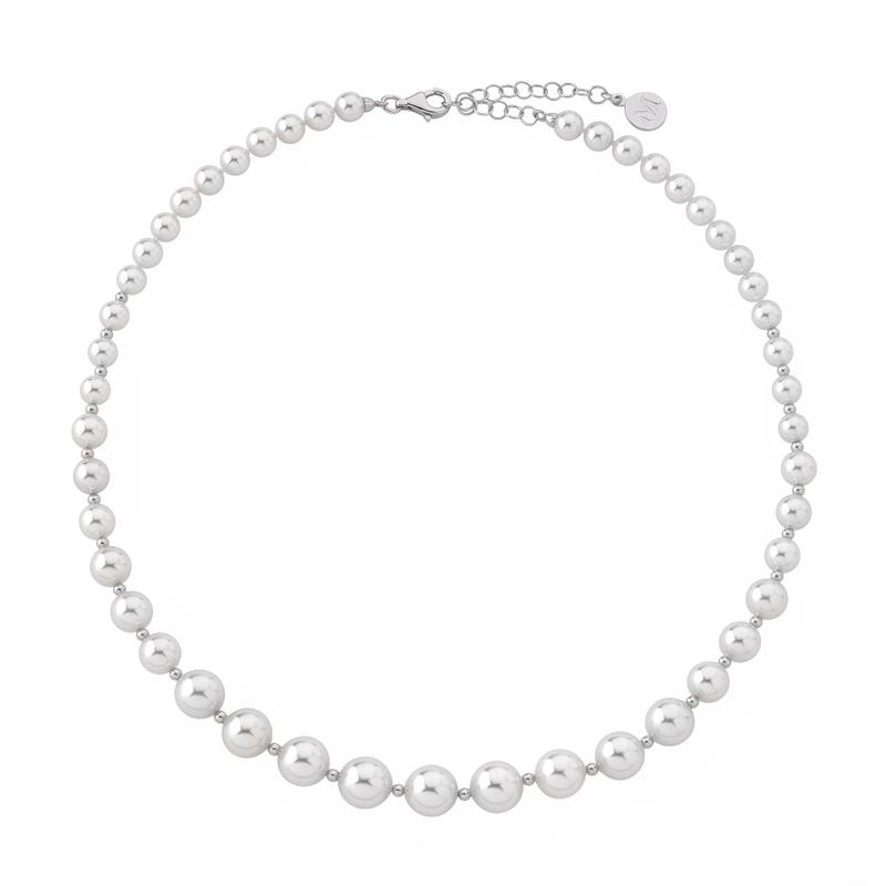 Ogrlica od rodiniranog srebra dužine 43/48 cm s okruglim bijelim biserima promjera 6/7/8/9/10 mm.