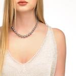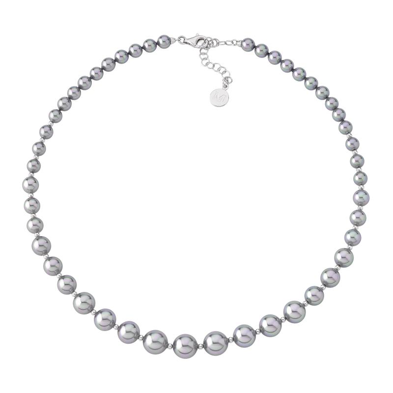 Ogrlica od rodiniranog srebra dužine 43/48 cm s okruglim sivim biserima promjera 6/7/8/9/10 mm.