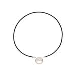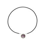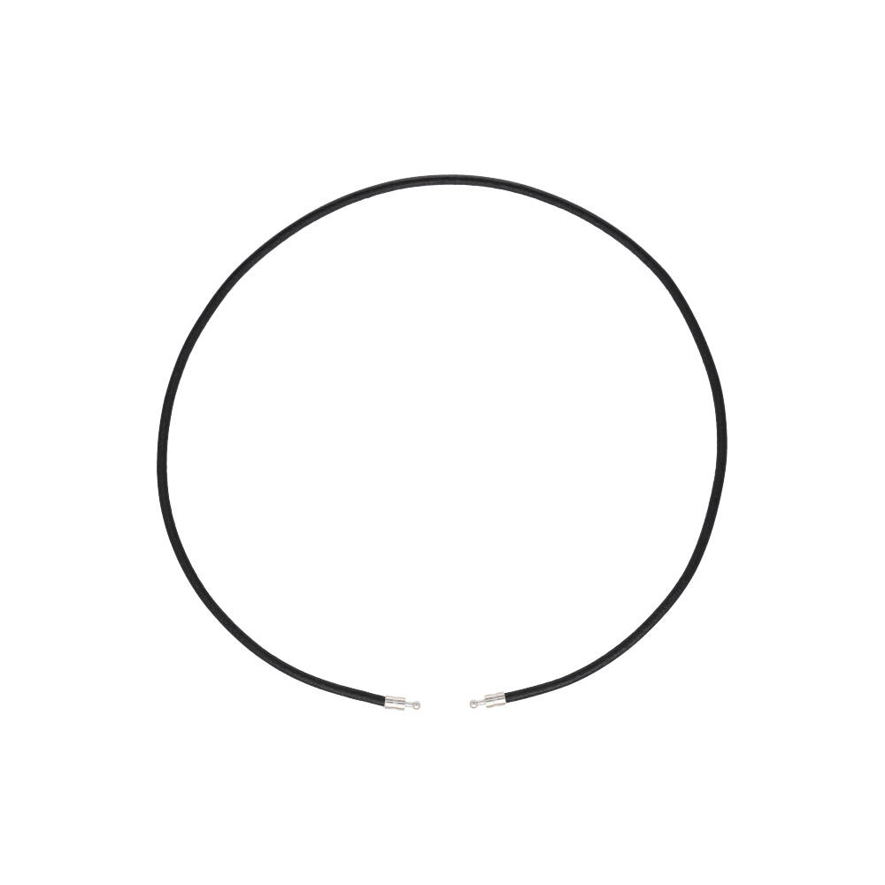 Ogrlica od crne kože dužine 40 cm s dijelovima od rodinirane mjedi.