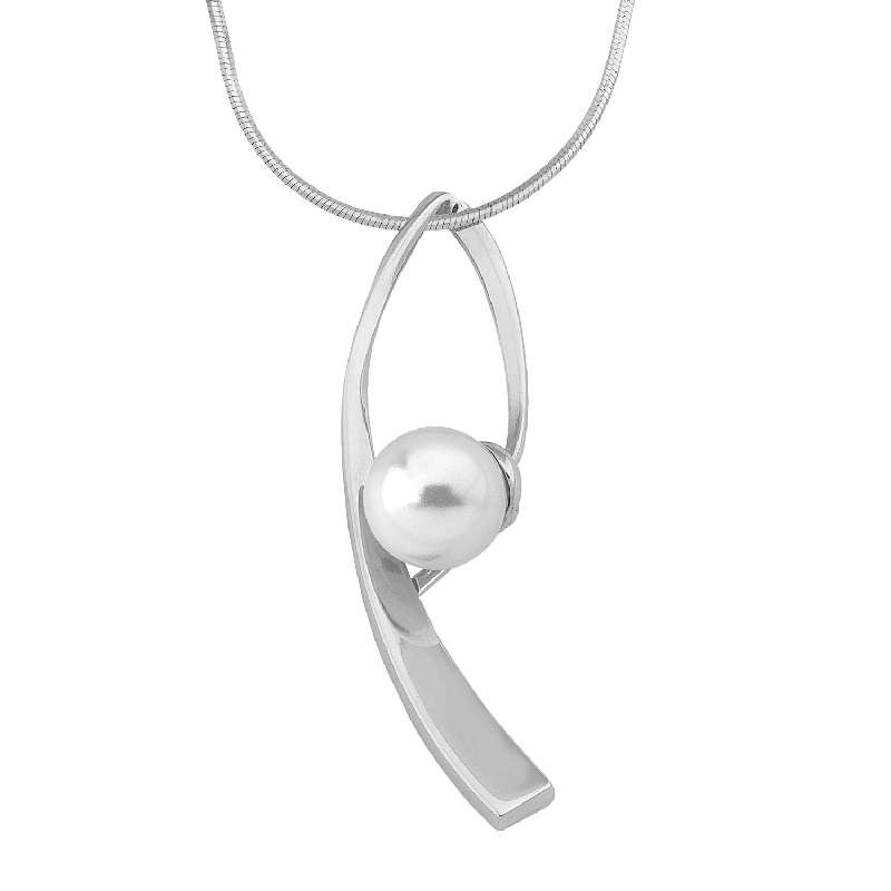 Privjesak s lančićem dužine 37/42 cm od rodiniranog srebra s okruglim bijelim biserom promjera 10 mm.