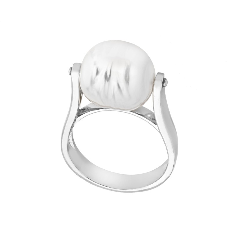 Prsten od rodiniranog srebra s baroknim bijelim biserom promjera 12mm. Veličina 15.Veličina: 55