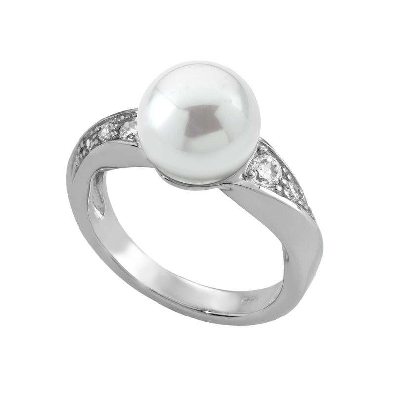 Prsten od rodiniranog srebra s okruglim bijelim biserom promjera 12 mm. Veličina: 53