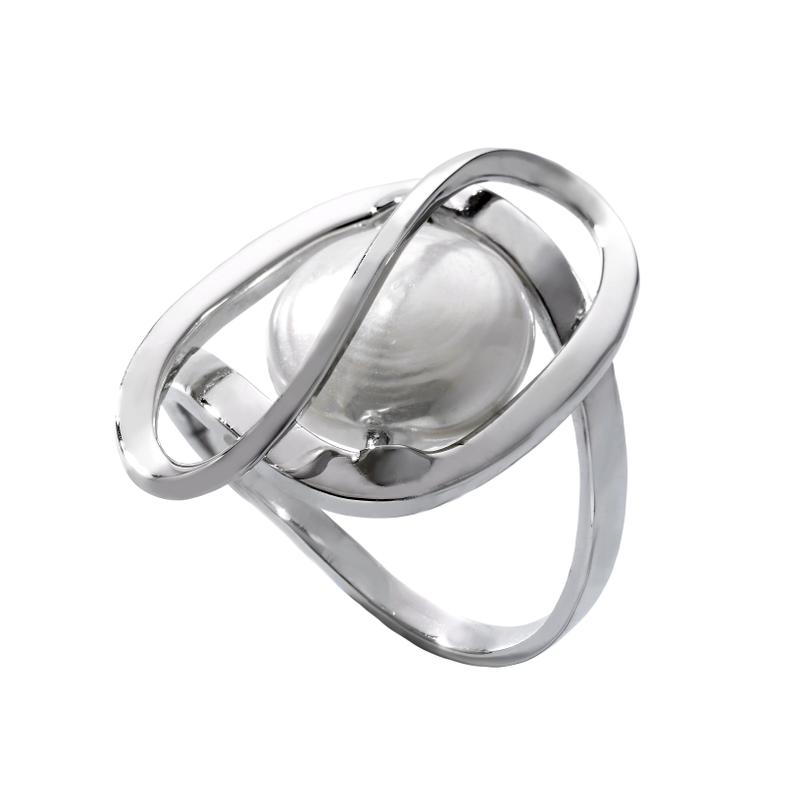 Prsten srebrni s presvlakom od rodija, s ovalnim bijelim biserom od 12 mm. Veličina: 55