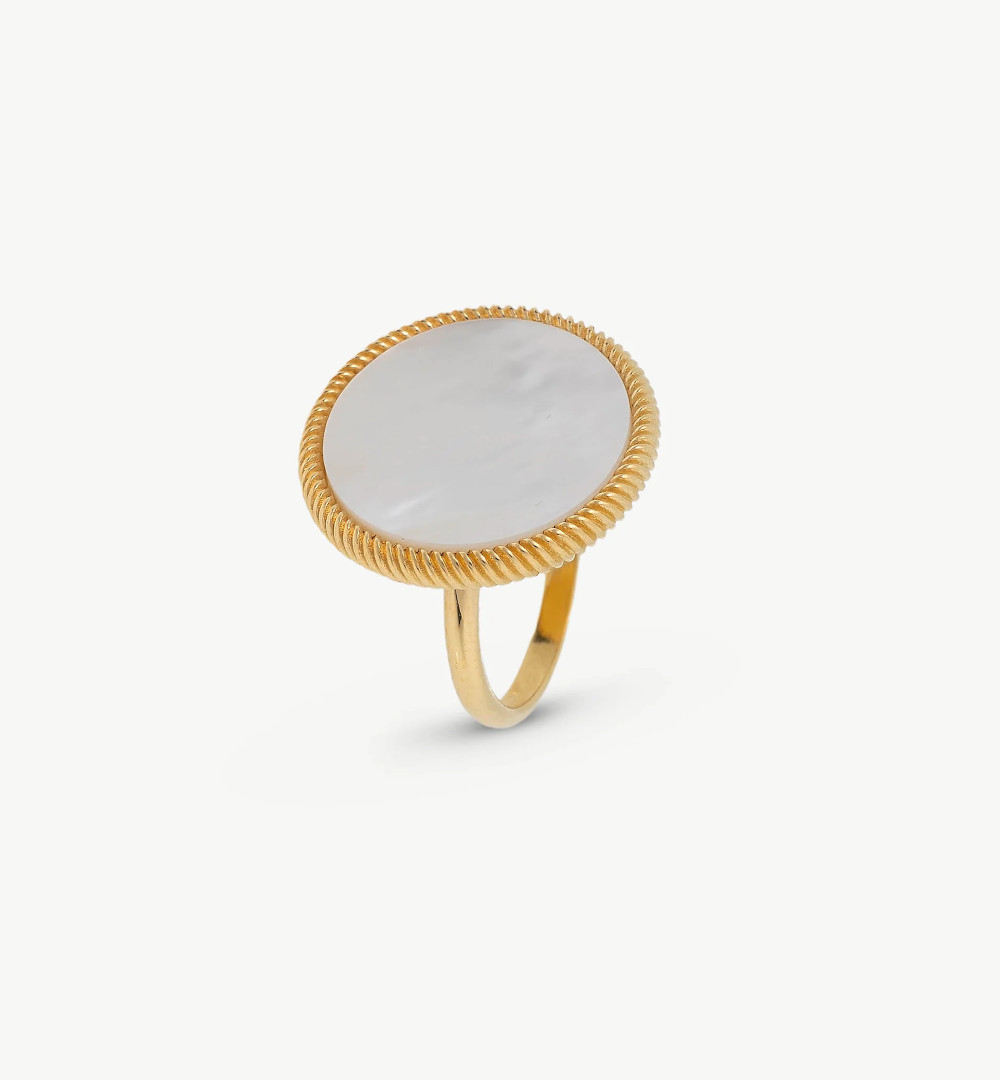 Prsten od majčinog bisera u pozlaćenoj srebrnini. Veličina 13
