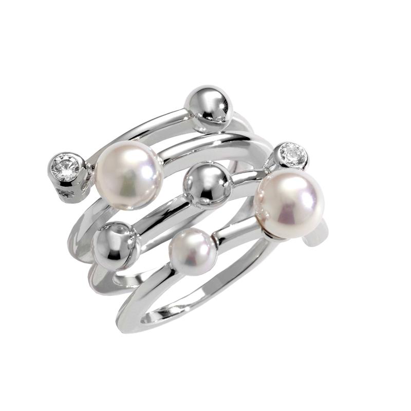 Prsten srebrni s presvlakom od rodija, s okruglim bijelim biserima promjera 6 mm. Veličina: 61